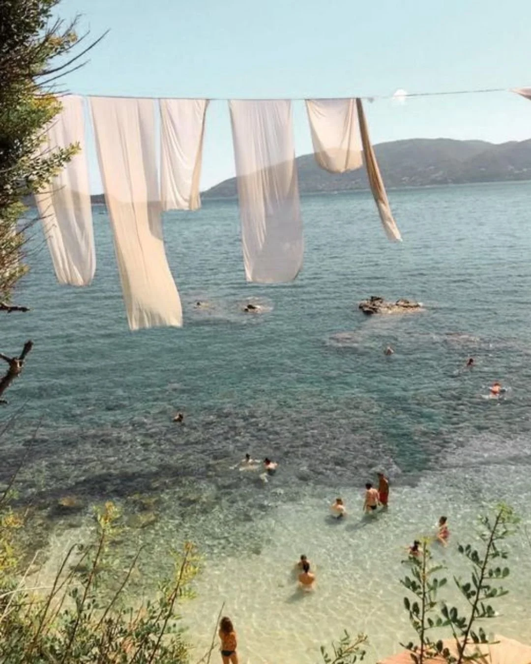Swimming in sparkling, pristine waters.